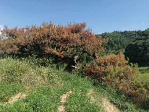 松材线虫病又称松枯萎病,是一种毁灭性虫害。它是通过松墨天牛等媒介昆虫传播于松树体内,从而引发松树病害。被松材线虫感染后的松树,针叶黄褐色或红褐色,萎蔫下垂,树脂分泌停止,树干可观察到天牛侵入孔或产卵痕迹,病树整株干枯死亡,最终腐烂。保绿丰多年来致力于松材线虫病的防控工作,在松材线虫病的监测、除治、监理、普查等各个环节上具有丰富的经验和成熟的技术。